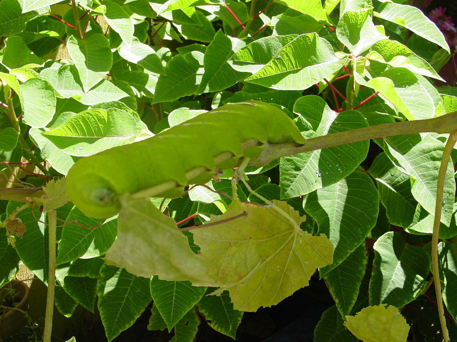 Vive y se alimenta de hojas de parra. Este especimen lo encontré en una parra que plantó en su jardín mi esposa Guadalupe.